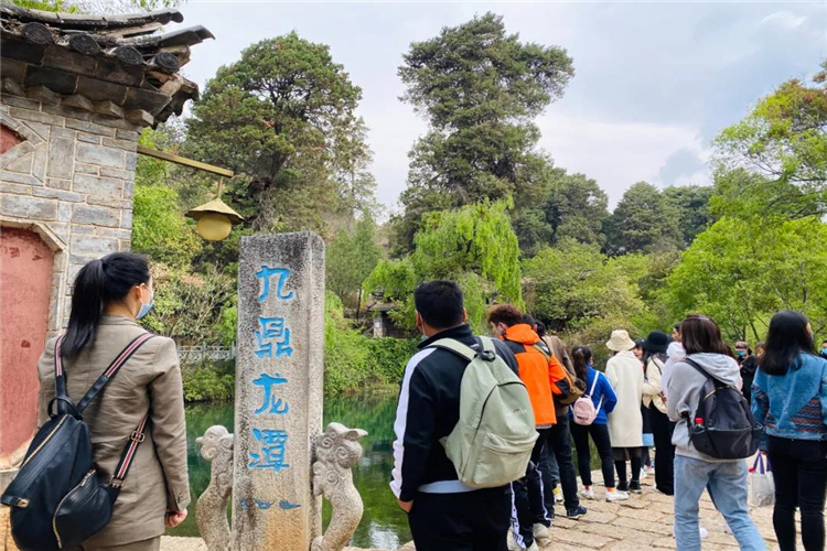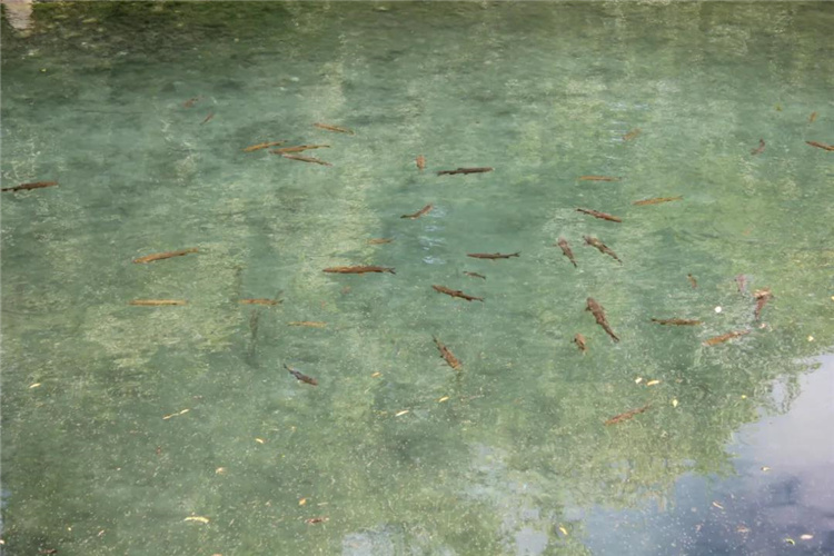 潭水從山腳石縫涌出,水不深,卻晶瑩清澈,有珍稀魚種,名曰:“高原裂腹魚”,大小數(shù)百,暢游其間,猶如詩(shī)畫。泉水冬暖夏涼,煮水品茗,愜意之極。乾隆《麗江府志略》載曰:“九鼎龍?zhí)?,在城西十里,潭水清澈,游魚可數(shù),廣十畝,巖石奇秀,林木幽深,相傳昔有人欲網(wǎng)其魚,雷電驟至,至今無敢者。”可見束河當(dāng)?shù)匕傩諏?duì)水源、對(duì)生活環(huán)境的保護(hù)有著很規(guī)范的傳統(tǒng)。每逢喂食,魚兒爭(zhēng)先搶食,濺起水花蕩漾,濕人面夾,親敬之極,鄉(xiāng)人常與魚同樂。