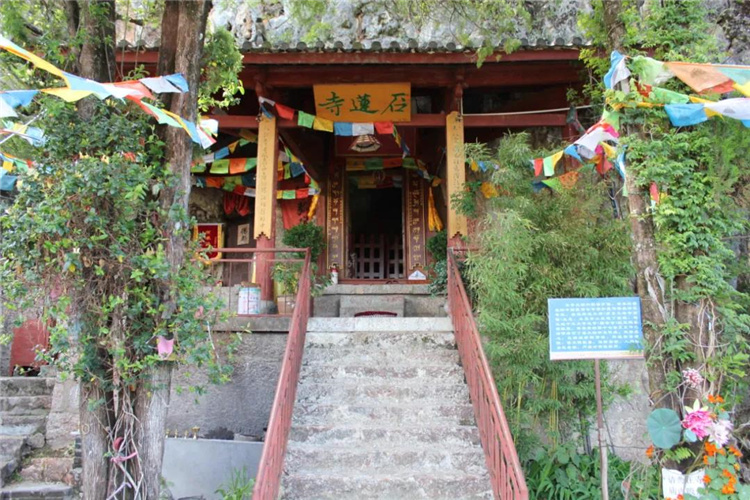 松云村蓮花山上有似虎口的巖洞,村民以為不吉,故建寺以堵虎口,以求平安,寺名曰:“石蓮寺”。后來曾有人在寺內(nèi)開辦夜校,瑯瑯書聲,如祥瑞福音,人所稱道為“石蓮夜讀”。寺前有平地,地勢(shì)高曠,可以觀賞束河以及麗江壩子風(fēng)光。于2004年由束河高僧喜饒朗達(dá)大師倡議重修,今為束河著名景點(diǎn)。