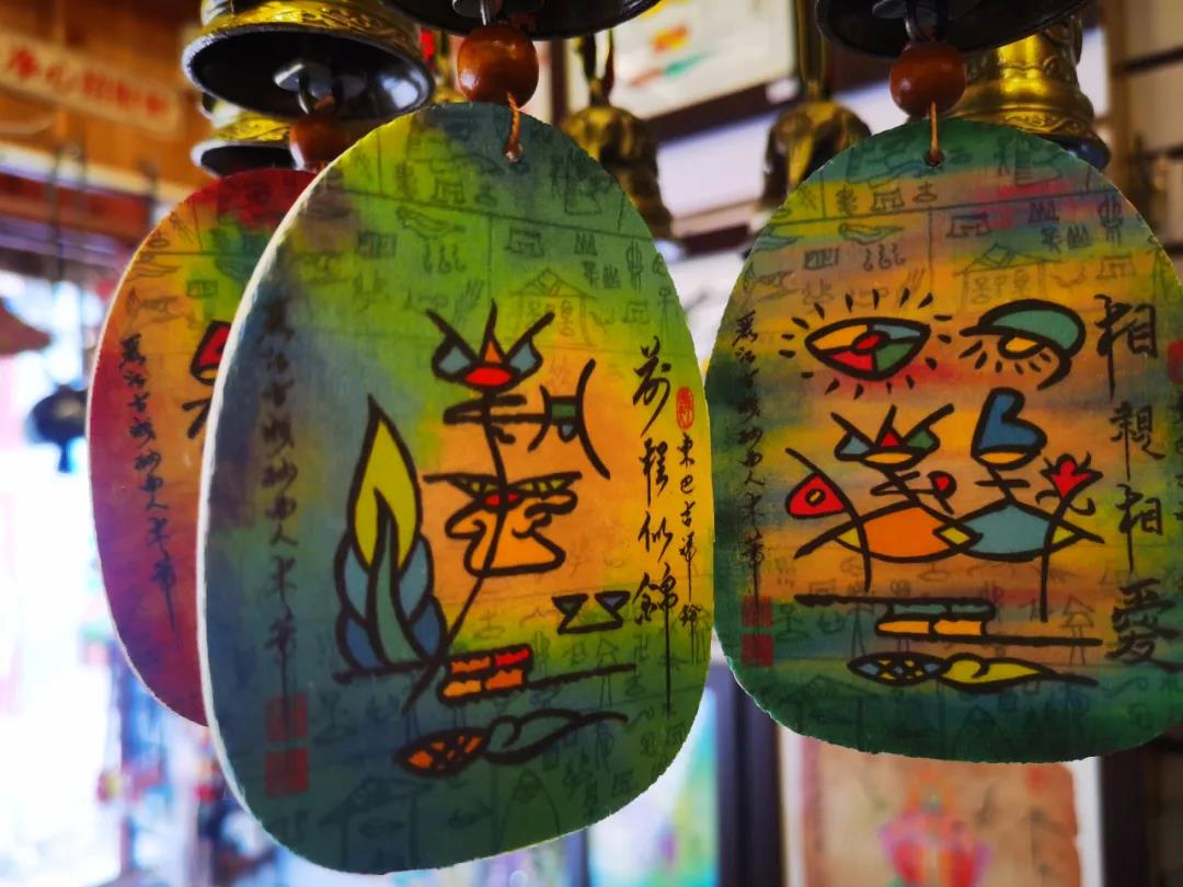 2003年,在麗江取景拍攝,由孫儷、何潤東主演的電視劇《一米陽光》爆火,隨之火起來的還有麗江古城和古城里的銅鈴。如今,古城五一街上還藏著一家與當(dāng)年的電視劇頗有淵源的銅鈴店,看似不起眼卻相當(dāng)受歡迎。店主是曾經(jīng)參與《一米陽光》電視劇中銅鈴道具制作的民間手藝人,那么多年堅持做銅鈴不曾改變,還注冊了“東巴吉祥鈴”的商標(biāo),如今店里所有的東巴吉祥鈴均為手繪原創(chuàng)作品,每一個都獨一無二。東巴吉祥鈴帶有祝福、好運之意,快20年過去,依然是麗江的一道文化符號和象征。