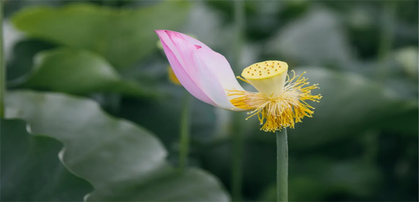 荷花從齊腰的荷葉里竄出來,像是點亮在海面上的一盞盞粉紅色的燈,但它不像燈塔,可以指引航船的方向,它開得實在太多了,讓每一個人都因它的美麗而流連忘返。