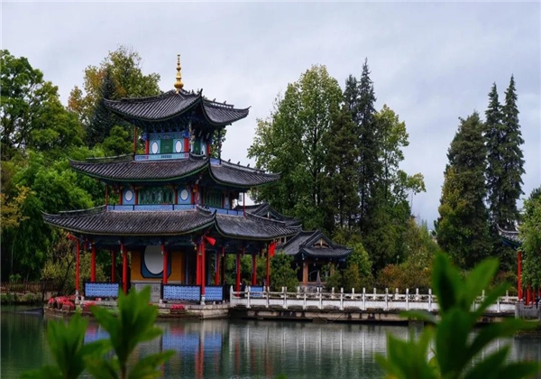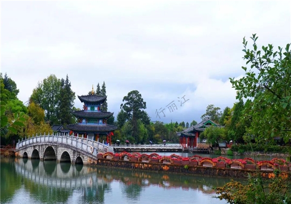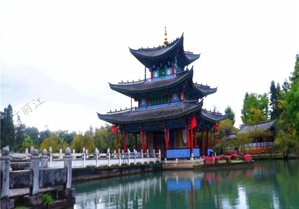 黑龍?zhí)豆珗@有著“麗江古城后花園”的美譽(yù),方圓7.5公頃,園內(nèi)亭臺(tái)樓閣錯(cuò)落,花木相映,以山光水色取勝,清幽典雅,一派詩情畫意。