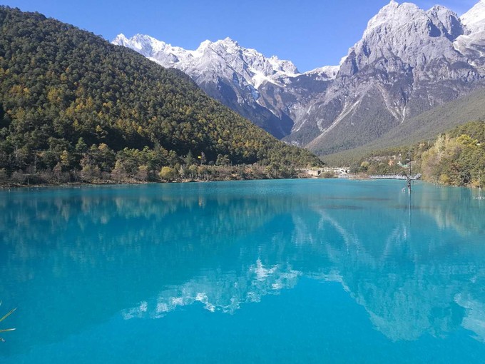 景如其名,水很清澈很藍(lán),也有小九寨溝之稱,因?yàn)樗途耪瘻弦粯雍苊利悺_@里的水之所以是藍(lán)色的,是因?yàn)楹椎V石富含銅離子,反射藍(lán)色光芒,像是一塊藍(lán)色的湖水狀寶石躺在山間。在這里隨意拍下的景和人畫面都超級(jí)贊,無須任何后期加工。
