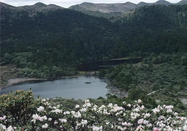 此處的杜鵑比景區(qū)大門附近的晚一個月左右,5月中下旬較為合適。此處的杜鵑環(huán)繞在冰蝕湖周圍,拍出的相片最為震懾。