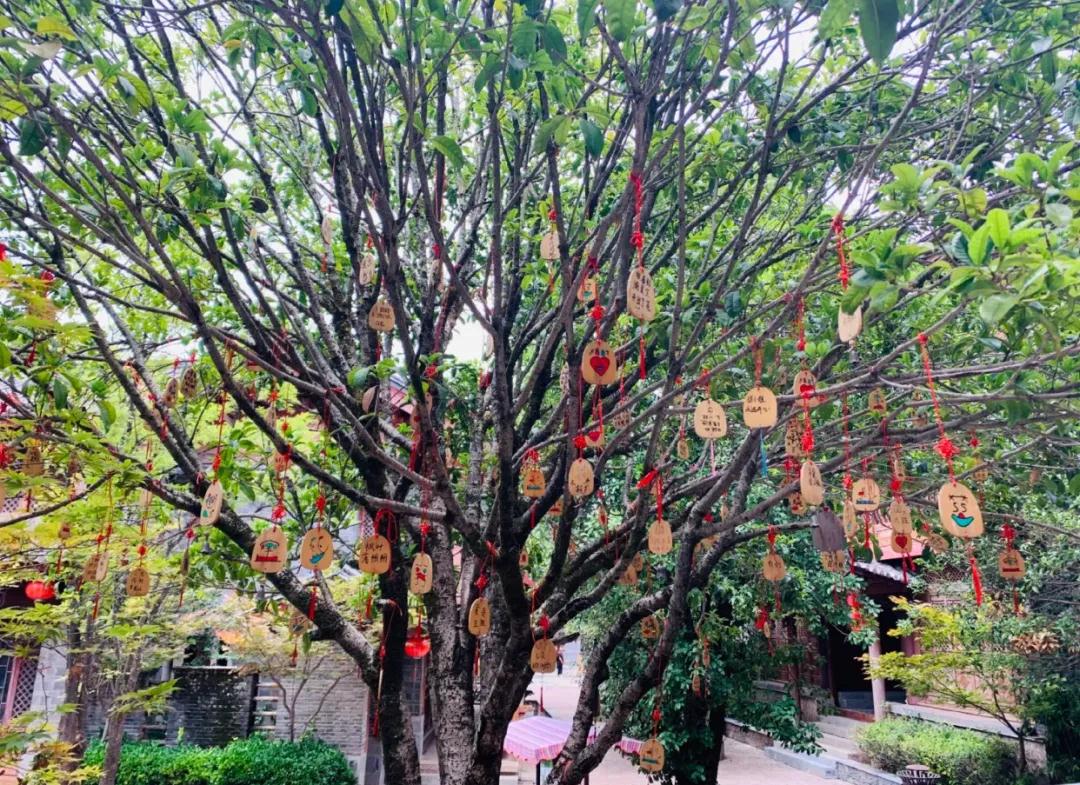 樹(shù)上的木牌,不是普通的物件兒,每一個(gè)都代表著一顆心,心中的愿望,寄托在了小木牌上,心誠(chéng)則靈。