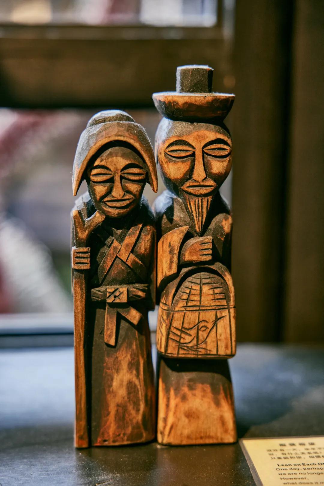 在追夢的路上,雖然中間也經(jīng)歷了一些波折,但因為那份簡單純粹的熱愛,一切順理成章又回到了最初的美好。山有木兮,為愛而塑,如今的老木藝術空間是老木和愛人阿俊在古城里為木頭尋的一個家。老木似木而不“木”,愛和東巴文化的滋養(yǎng),讓他的木雕作品充滿靈性,古樸粗獷、天真放達,透露著一股強勁的生命力。