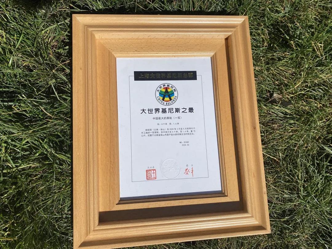 2020年,楊紹君來到麗江打工,來的時(shí)候還特意帶了10多雙在老家制作的草鞋。穿梭于束河古鎮(zhèn)的石板路上,他和他穿著的草鞋受到很多游客的關(guān)注,因此他萌生了傳承和發(fā)揚(yáng)草鞋編織文化的想法,于是辭掉工作回到老家。在老家保山,他做了一雙長(zhǎng)4.9米,寬1.6米,重75公斤的大草鞋,獲得了大世界基尼斯之最。