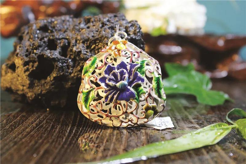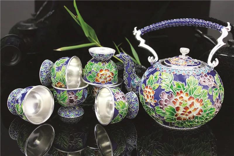 據(jù)唐建安介紹,琺瑯銀器制品突出掐絲,色彩以青藍(lán)朱砂為主,配以適量的黃、綠、白、赭石等色,顯得制品精美、雅致、別出一格。其胎體輕薄、裝飾珠寶鑲嵌工藝精巧富麗,構(gòu)思巧妙。
