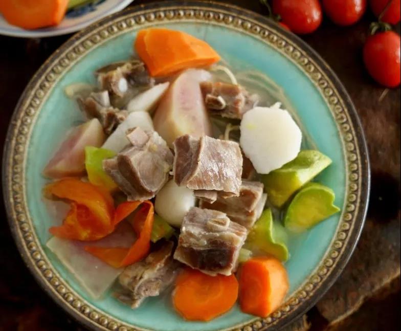 制作好的臘排骨肉質(zhì)干爽緊實(shí),色澤發(fā)亮,配上時(shí)令蔬菜,煮出來(lái)的火鍋湯汁濃郁,味道醇厚。臘排骨火鍋是江傳統(tǒng)美食之一,也是納西人家最高禮儀待客“三疊水”筵席第三疊中的一道主菜——“熱烈疊”?!叭B水”等同于納西人的滿漢全席,只有宴請(qǐng)最尊貴的客人才上此菜。相傳,當(dāng)年徐霞客游歷麗江時(shí),木增就曾用臘排骨來(lái)款待。