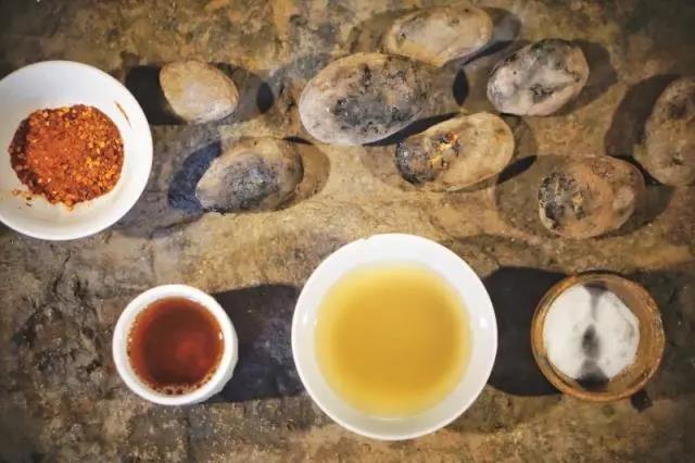 待罐子烘熱,蜂向勇將茶葉取出,放入小陶罐中,“當?shù)夭簧a(chǎn)茶葉,所以我們用的是下關(guān)沱茶”。茶葉在陶罐中,經(jīng)文火慢慢煨烤,開始散發(fā)出淡淡的茶香,期間蜂向勇不斷抖動陶罐,讓茶葉上下翻滾,以保證茶葉能夠均勻受熱?!翱静杩此坪唵危渲袇s有大學問。”炒茶環(huán)節(jié)要拿捏好分寸,炒太糊,味重,影響口感,炒不到位,茶香不能完全被釋放開來,自小就跟隨祖輩學習烤鹽茶,如何烤制出醇香美味的鹽茶,蜂向勇早已了然于胸??静璧耐瑫r,蜂向勇把鹽塊也放到火堆旁烘烤,“傈僳族鹽茶,鹽和茶葉二者缺一不可”。