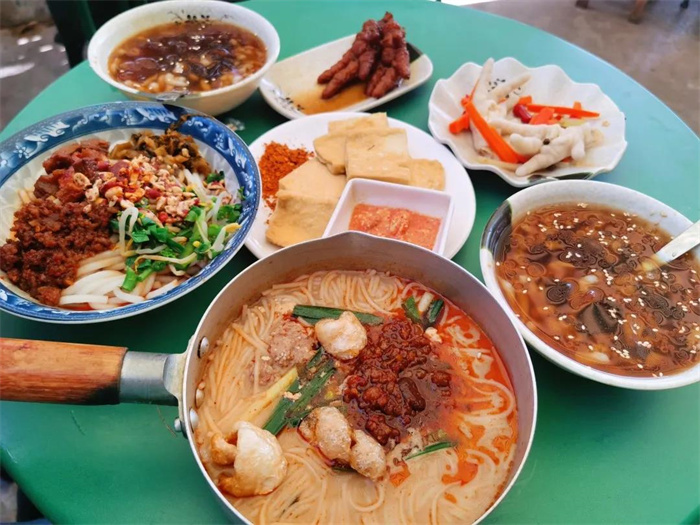 小鍋米線是麗江人午餐桌上的摯愛,新鮮的肉沫加上一些新鮮時蔬在小銅鍋里咕嚕咕嚕煮上一會,加入調(diào)料,最后加入米線煮上一會,一碗熱氣騰騰的小鍋米線就上桌了。光吃小鍋米線可滿足不了會吃的麗江人,再來點小吃吧,一份炸洋芋、炸菌子、鹵雞腳,這些都是小鍋米線的標配。午間的休閑時光,快樂就是這么簡單。