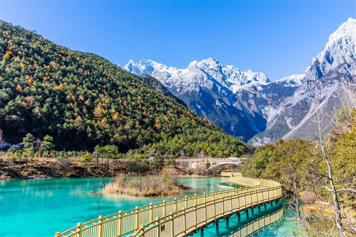 藍月谷位于玉龍雪山腳下,這片藍是自然賜予的藍,更是無可挑剔的純凈藍,被山峰密林包圍的藍月谷在天氣晴朗時,可以看見湖水猶如藍寶石般鑲嵌在其中,藍月谷罕見的人間景色,讓無數(shù)人為其傾倒。