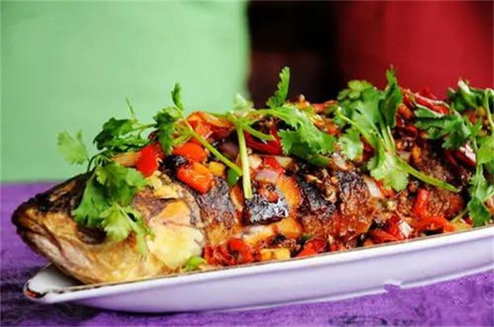 ”東巴烤魚”是麗江茶馬古道上流行起來的一道美食。東巴烤魚的做法是先把魚肚剖開去除內臟后,陌上了鹽,花椒,和五香粉腌制了一段時間,在放在鐵鍋里先用慢火烤制等到味道吸收之后再放到油鍋里炸。整條烤魚外脆內嫩,吃起來味道非常鮮美。配合風味的豆豉在一起,整個魚的風味非常香。再加上各種美味的佐料配合在一起,讓人回味無窮。東巴烤魚一定是到麗江必吃的一道菜”。麗江無論是小餐館還是納西餐館都有。