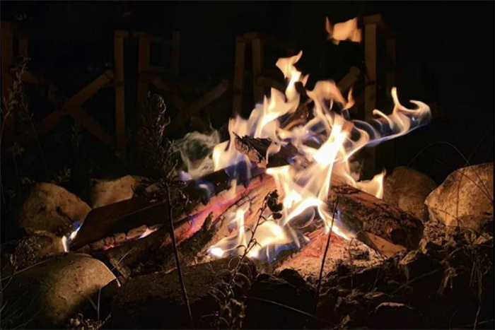 這時(shí)當(dāng)?shù)叵驅(qū)О褱?zhǔn)備好的木柴拿了出來(lái),又在旁邊做好了安全措施,準(zhǔn)備在營(yíng)地給我們弄一個(gè)篝火晚會(huì)??粗窕鹩梢粋€(gè)火光開始,逐漸被火焰包裹,燃燒的木柴,開始聽(tīng)得到“噼里啪啦”的聲響,暖意也上來(lái)了。一群人漸漸向火堆聚集,放著音樂(lè),開始一場(chǎng)“大型蹦迪”晚會(huì)!