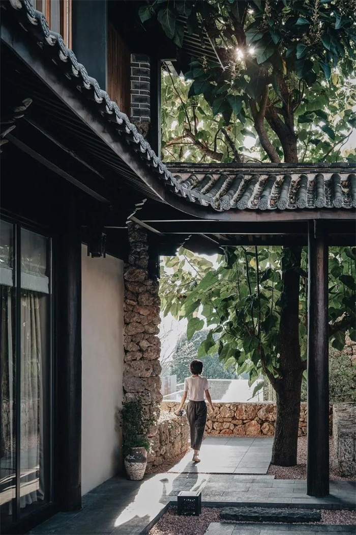 人對自然的喜愛和親近是天生的,因此,HYLLA LAND·LIJIANG麗江物與嵐·界在改造修繕過程中,盡量保護它、呈現(xiàn)它。為了不砍伐和挪動原本生長在“解脫林”的一草一木,設(shè)計師們調(diào)整了建筑布局,有的地方也少建了房子。緊靠林冠線的地方也沒有人為痕跡的''破壞",而是保護它們自然生長。為了不干擾它們,酒店水渠兩邊的建設(shè)地,也做足了退讓距離。