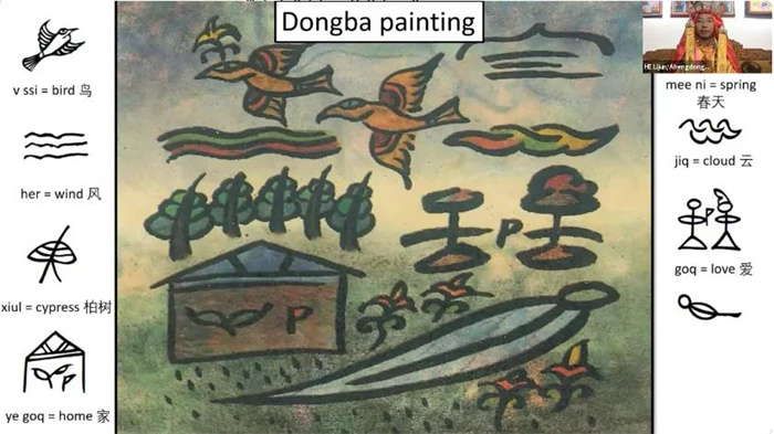為慶祝聯(lián)合國第12個(gè)中文日,4月19日至21日,聯(lián)合國中國書會以“聚焦象形文字”為主題,在紐約總部舉辦了三場線上活動(dòng)。分別介紹了良渚文化刻畫符號、東巴文和甲骨文三種象形文字,以及與之相關(guān)的良渚古城遺址、麗江古城和殷墟三個(gè)世界遺產(chǎn)地,以彰顯中國語言與文化魅力。在第二場線上活動(dòng)《講座:神秘的東巴象形文》上,北京東巴文化藝術(shù)發(fā)展促進(jìn)會邀請到東巴文化傳承人和麗軍和香港中文大學(xué)翻譯系助理教授、納西學(xué)研究者鄧彧共同講授東巴文。通過講解東巴典籍中的詞匯,讓觀眾了解故事內(nèi)容,并通過模擬情景對話讓觀眾學(xué)習(xí)游覽麗江時(shí)可能用到的常用語。