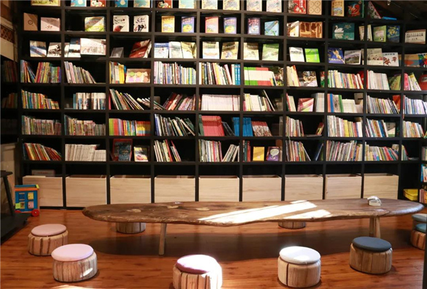 在宣科書房有一個特殊的區(qū)域,是專門為小朋友設(shè)計的兒童專區(qū)。在這個區(qū)域桌椅都變得可愛了,小小圓圓的木凳,圍著長條不規(guī)則的木桌。在桌子的周圍是各種各樣的兒童讀物,有伴隨我們每個人童年的童話故事、炫酷的有聲書以及精美的立體書。小朋友和家長在這里一起看繪本,配上溫柔暖和的陽光,也是美妙的享受。