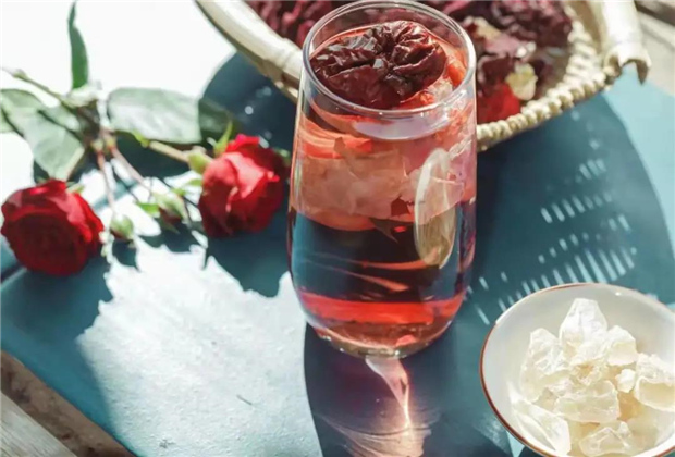 一款適合女孩子的高顏值飲品,由冰糖、大棗、玫瑰制成,清甜的冰糖味道加上玫瑰的花香,一口入魂。粉色的顏值就像情竇初開的少女一般,有顏有味,滿滿少女心。