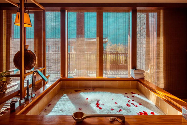 酒店建筑結(jié)合麗江傳統(tǒng)納西古村落布局,東高西低,鱗次櫛比,設(shè)計營造出令人身心放松平靜的居所,并為此地保留了麗江當?shù)貍鹘y(tǒng)村落獨有的生活氛圍。