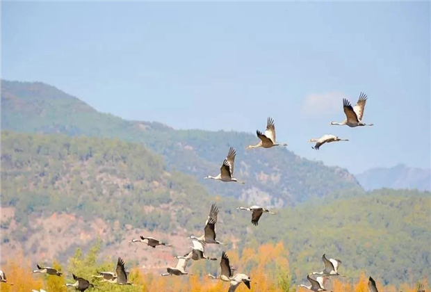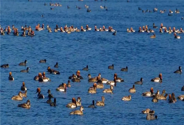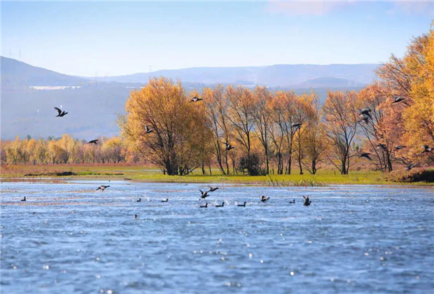 鳥兒們成群結(jié)隊(duì)從遙遠(yuǎn)的北方故里來(lái)到這里,和本地鳥在一起,在湖泊、沼澤、山林、草甸里自由嬉戲,捕魚捉蝦,一派祥和景象。