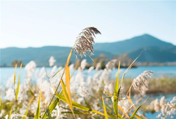 黃昏時分,湖面的蘆葦美得更加囂張。柔軟的陽光灑滿湖面,照在蘆葦上,就連空氣中都彌漫著唯美的味道,十分適合拍照。