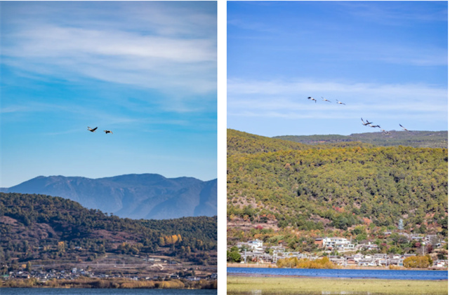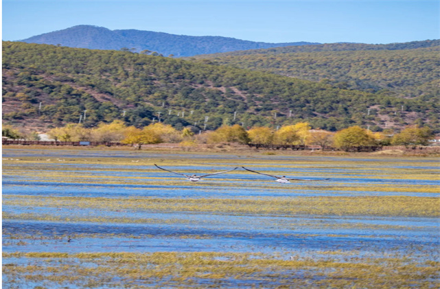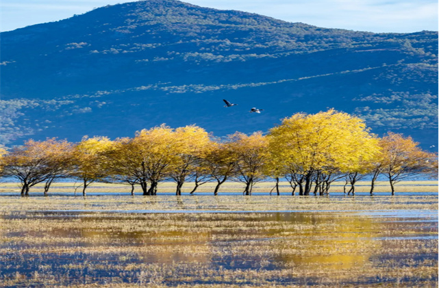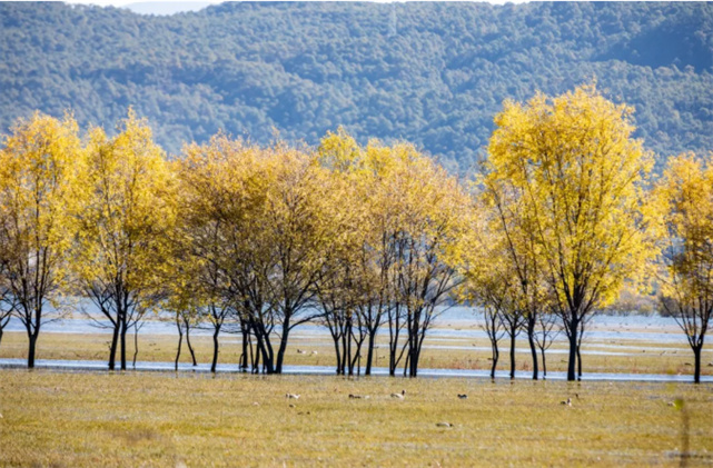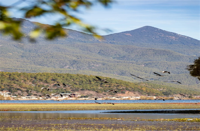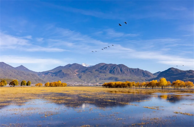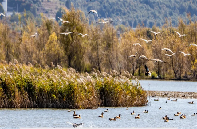 不但鳥(niǎo)多,風(fēng)景也正好看!初冬的拉市,湖光山色,層林盡染,候鳥(niǎo)的倩影點(diǎn)綴其間,相映成韻。目光所及,皆是詩(shī)畫。