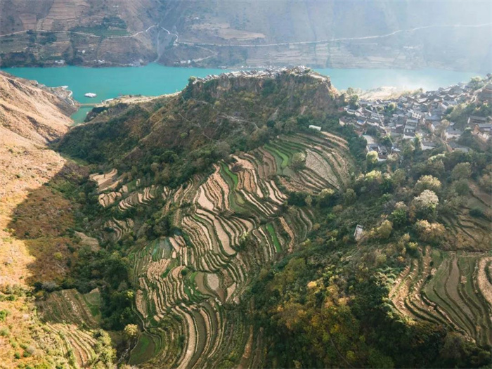 石頭城海拔在1700~1800米,小城周圍梯田連綿,冬春麥浪蕩漾,夏秋禾稻飄香,把城堡裝點得生機盎然。這些梯田有著別具一格的自流灌溉系統(tǒng),這種梯田建設的獨創(chuàng),充分顯示出古代納西族人民的聰明才智。