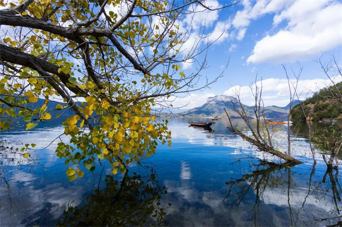 瀘沽湖,一半在云南,一半在四川,湖水清澈如鏡,仿佛西南高原上的一顆明珠,坐落在群山懷抱之中。每逢晴天,藍天白云,倒映湖中,水天一色,景象奇麗。這里是攝影愛好者的天堂,也是旅客向往的勝地。