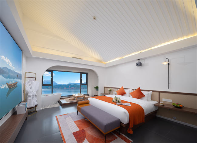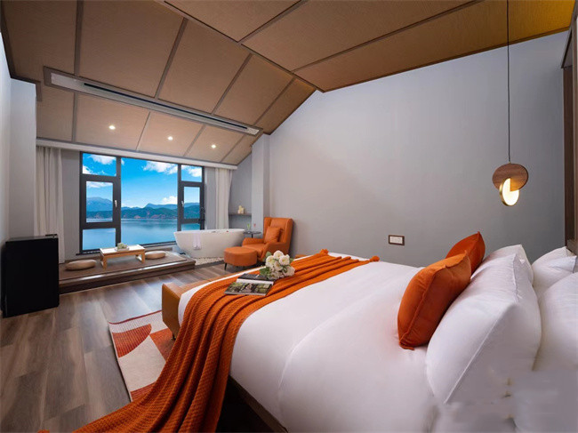 房型特色:所有湖景房均為一線湖景房,均為正面面對瀘沽湖180度無死角的觀湖效果。房間同時正對神秘且威嚴的格姆女神山,每個清晨與傍晚都能看到不一樣的朝與暮,不一樣的火燒云。在晴朗的夜晚可看到美麗絢爛的高原星空,數(shù)不完的星星和連不完的星座。視野開闊,湖景一覽無余,全房地暖,獨立空調,迷你冰箱,高升燒水壺,茶桌茶具及冰島普洱茶體驗包,智能馬桶,電動窗簾,浴缸,高檔床墊,高端布草,一次性馬桶套,一次性浴缸套,高檔一次性洗漱用品,天貓精靈,無線WIFI,一客一換。