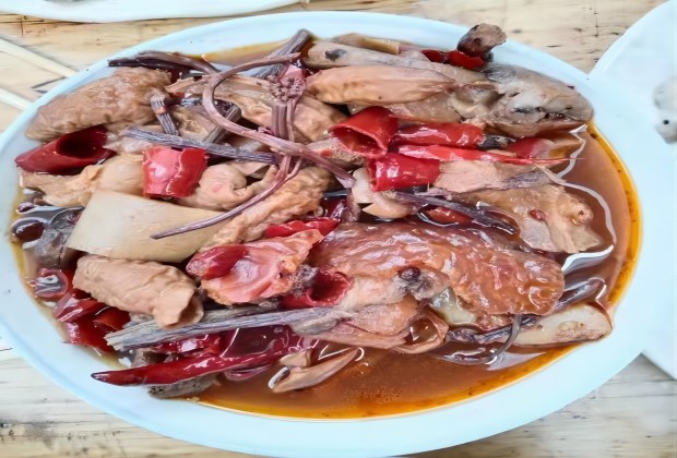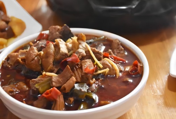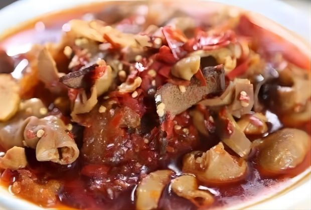辣汁鮮美,讓人唇齒回味,這道美味并不是如同“虎皮青椒”那樣只是吃辣,“江邊辣”中,“辣子”只起到調(diào)味配色作用,菜肴里可口的五味炸燉才是菜中主角。