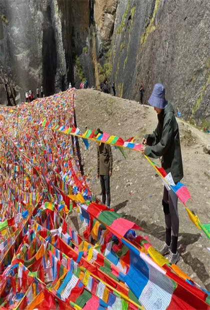 游客也可以按照藏族的傳統(tǒng),順時(shí)針繞瀑布走三圈以祈福。