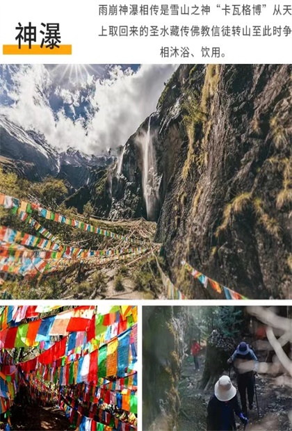 早餐后啟程前往神瀑,位于梅里雪山卡瓦格博南側(cè)有懸?guī)r頃瀉而下的瀑布,被稱為“雨崩神瀑”
