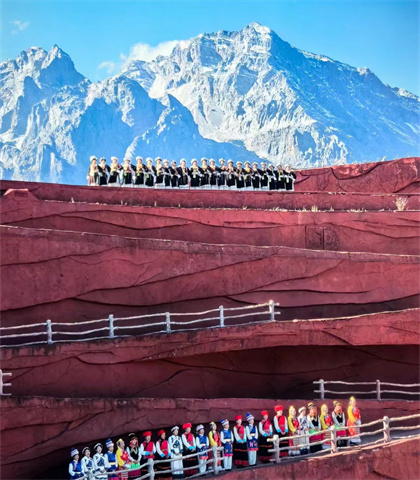 印象麗江劇場(chǎng)位于海拔3100米的玉龍雪山甘海子,以玉龍雪山的雄峰為天然背景。印象麗江是由導(dǎo)演張藝謀、王潮歌、樊躍共同執(zhí)導(dǎo)的原生態(tài)白天實(shí)景演出節(jié)目,全劇共分為“古道馬幫”、“對(duì)酒雪山”、“天上人間”、“打跳組歌”、“鼓舞祭天”和“祈福儀式”六個(gè)部分。