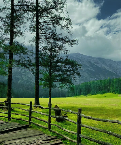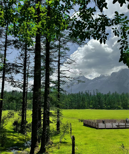 杉坪又名“殉情第三國(guó)”,是玉龍雪山主峰扇子陡半山腰的一個(gè)高山草甸,海拔3240米,土語(yǔ)稱“游午閣”即“情死之地”,在雪山主峰的右下方,是納西族人心中的圣潔之地 。云杉坪在納西語(yǔ)稱“吾魯游翠閣”,意為“玉龍山中的殉情之地”。相傳這里是納西族神話傳說(shuō)中“玉龍第三國(guó)”的男女青年殉情處。