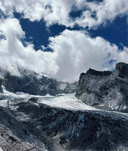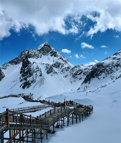 玉龍雪山的冰川屬于溫帶海洋型冰川,因受海洋性季風(fēng)影響,具有積累消融量大、冰溫較高、底部滑動(dòng)明顯、運(yùn)動(dòng)較快、對(duì)氣候變化反應(yīng)敏感等特點(diǎn)。玉龍雪山全山共發(fā)育有19條現(xiàn)代冰川,其中,最大的一條冰川為“白水一號(hào)”冰川(即冰川公園)位于主峰扇子陡正下方,全長(zhǎng)2.9公里。冰川的末端是千姿百態(tài)的冰塔林,因陽(yáng)光折射呈現(xiàn)出藍(lán)綠色,人稱“綠雪奇峰”。冰川公園海拔4680米,有索道直通冰川公園。