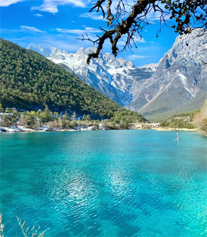 藍(lán)月谷景區(qū)即是以前的“白水河”景區(qū),位于玉龍雪山東麓甘海子以北、云杉坪南側(cè)的山谷之中。源自雪山冰川的萬(wàn)古冰雪消融之后順著峭壁流淌而下,不斷匯集為山澗、溪流,最終在藍(lán)月谷上游深谷之中形成了清澈見(jiàn)底、甘冽無(wú)比的河流,因河床由白色石灰?guī)r構(gòu)成,使整條河水呈現(xiàn)出白色光澤,顯得分外純凈,故得名“白水河”。之所以叫做“藍(lán)月谷”,是因?yàn)樵谇缣鞎r(shí),水的顏色是藍(lán)色的,而且山谷呈月牙形,遠(yuǎn)看就象一輪藍(lán)色的月亮鑲嵌在玉龍雪山腳下,所以名叫藍(lán)月谷。
