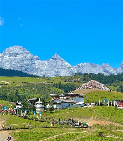 甘海子位于玉龍雪山東麓,原為高山冰蝕湖泊,后因雪線上升,積水減少以至干涸,人稱“干海子”,甘海子是一個(gè)三面環(huán)山的高原草甸,能夠縱覽玉龍雪山全貌,整個(gè)大草甸長(zhǎng)約4公里,寬約1.5公里,長(zhǎng)滿了茂密的牧草和低矮的灌木林。甘海子是玉龍雪山旅游區(qū)的游客集散中心,可為游客提供食、住、游、行、娛、購(gòu)等服務(wù)。這里有世界球道最長(zhǎng)、亞洲海拔最高、唯一在雪山腳下的高爾夫球場(chǎng)。
