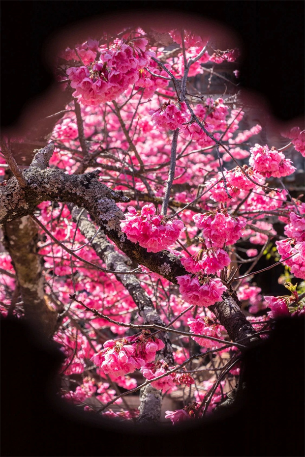 今年的春天,腳步似乎格外遲緩,然而古寺中的櫻花卻如期赴約。寺院里的百年櫻花樹,枝干粗壯,飽