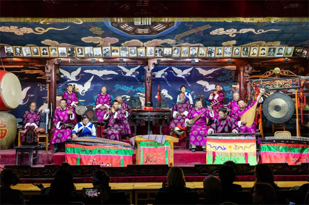 夜幕降臨,燈籠如同散落在硯臺(tái)中的朱砂,次第亮起,為古城披上了一層神秘的面紗。從某座四合院中飄出的洞經(jīng)音樂