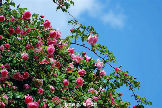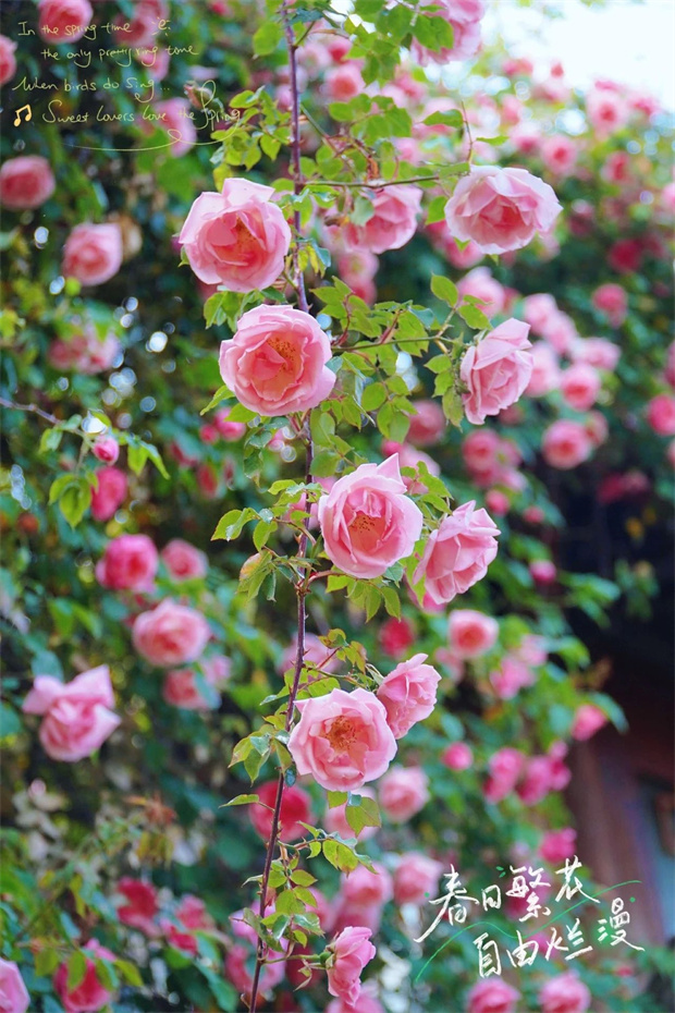 若你問:“何時宜訪麗江?”答案可以是:“四月薔薇滿城時?!币驗槟且豢?,整座古城都在低語——“我以花開為信,邀君