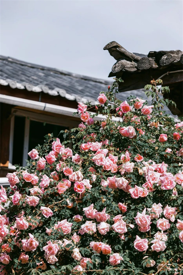 最令人稱奇的是它野蠻生長的姿態(tài)。在江南需精心呵護的月季,到了麗江竟顯露出驚人的生命力——一藤便能成景,孤