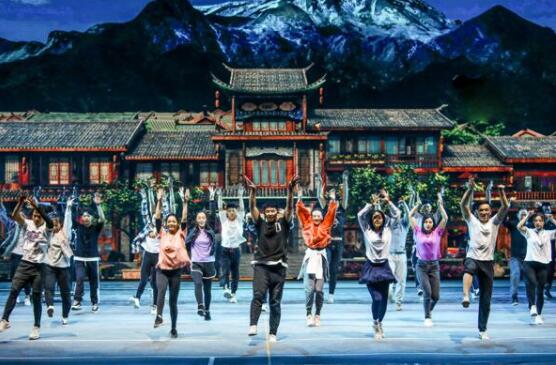 大幕拉開,玉龍雪山好像直接被移到了銀幕上了,逼真效果有點(diǎn)驚人。雪山腳下的麗江古城,商賈游人川流不息,時(shí)尚青年男女們走哪兒都在蹦跶跳舞,上演著百老匯歌舞劇里那種常見的群嗨。