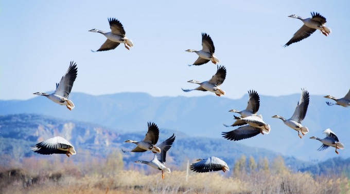 據(jù)調(diào)查,在拉市海濕地共有鳥類57種,每年來(lái)此越冬的鳥類有3萬(wàn)只左右,其中特有珍稀瀕危鳥類9種,包括青藏高原特有鳥類斑頭雁,國(guó)家一級(jí)保護(hù)鳥類中華秋沙鴨、黑頸鶴、黑鶴等。因而,省政府于1998年6月正式批準(zhǔn)建立云南麗江拉市海高原濕地自然保護(hù)區(qū),包括拉市海、文海、吉子水庫(kù)、文筆水庫(kù)等4個(gè)片區(qū),總面積6523公頃,其主體部分拉市海片區(qū),面積5330公頃,成為候鳥的棲息樂(lè)園。