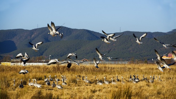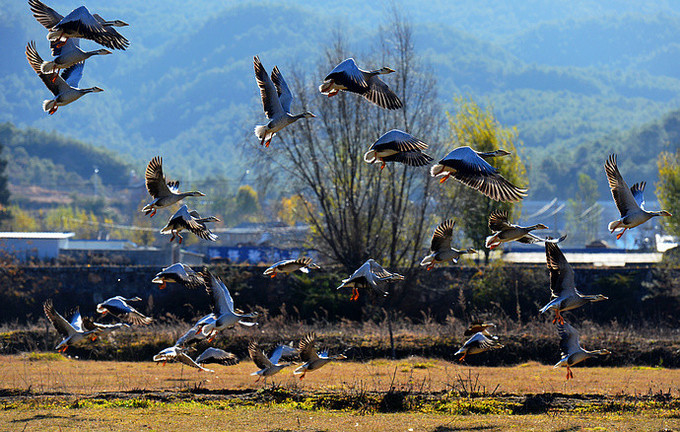 拉市海每年有3萬(wàn)只候鳥來(lái)此過(guò)冬,候鳥種類達(dá)57種。每年的11月至次年3月是一年中最佳觀鳥時(shí)間。