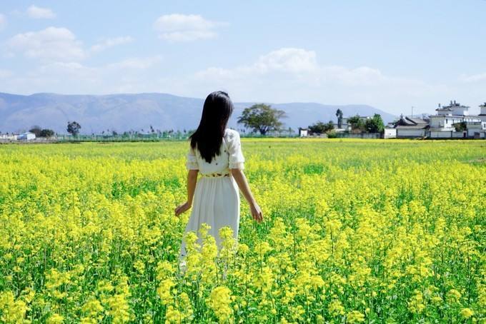 3、4月份,油菜花盛開,此時(shí)走進(jìn)拉市海,滿眼都是金色花海,一眼望去,是山水風(fēng)光,田園美景。