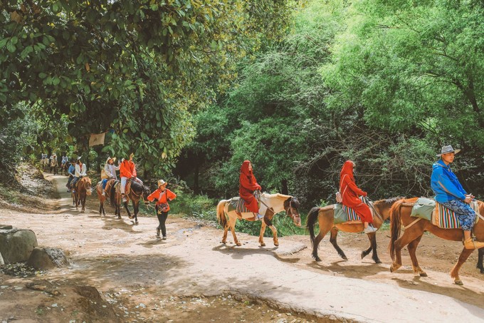 一般早上九點(diǎn)從麗江古城出發(fā),由于是山路所以大概40分鐘車程可以到達(dá)拉市海。拉市海當(dāng)?shù)赜薪偌荫R場(chǎng),每家的騎馬線路都不一樣,景色也不一樣,不過(guò)大方向都是所謂的茶馬古道線路。云南的馬為矮腳馬,即歷史上以耐力著稱的"滇馬",是茶馬古道上最重要的運(yùn)輸工具。滇馬的特征就是穩(wěn)健耐力長(zhǎng),適合山路險(xiǎn)路。雖然不是策馬奔騰,逐草四方,但是卻很愜意。聽著領(lǐng)隊(duì)人的吆喝聲以及馬蹄踏踏前行的聲音,會(huì)讓你有一種回到過(guò)去的穿越感。