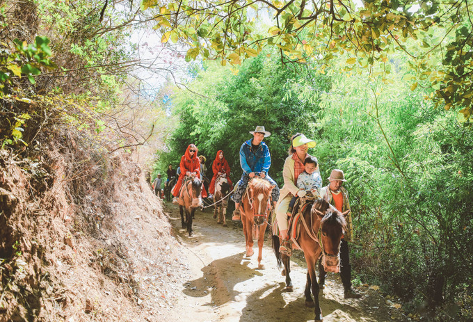 騎馬,一路上覺(jué)得村民一直用英文在和馬交流,上山下山,一個(gè)多小時(shí),馬兒和村民真的好辛苦,可村民還是會(huì)跟我們聊天,介紹當(dāng)?shù)靥厣?,沿途風(fēng)景……