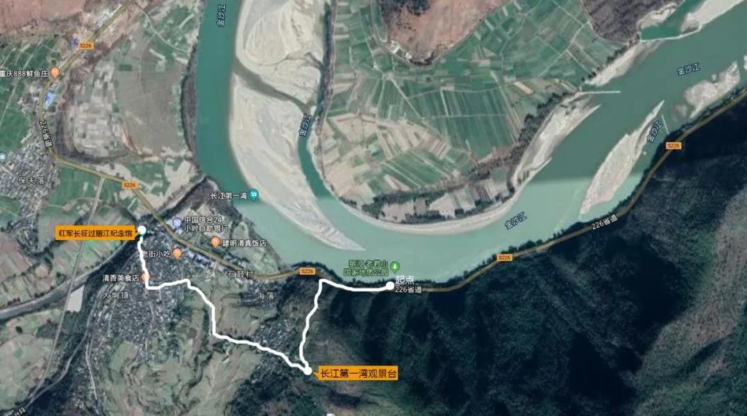 2、沙壩徒步至補(bǔ)給站用時(shí):二小時(shí)左右 公里數(shù):5公里 (長江第一灣觀景臺)