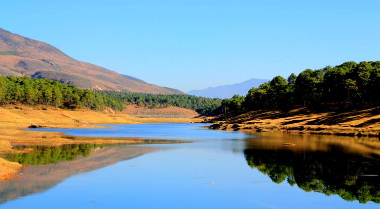 在云南省大理白族自治州北部靠近麗江的地方,有一塊狹長(zhǎng)形的大壩子,叫做鶴慶壩子。壩子西側(cè)的高山腳下,矗立著的就是與壩子同名的縣城——鶴慶縣城。鶴慶壩子里分布著大大小小的龍?zhí)叮噙_(dá)上百來(lái)個(gè),所以被稱為“龍?zhí)吨l(xiāng)”。尤其以大龍?zhí)?、西龍?zhí)?、黃龍?zhí)哆@三個(gè)為佳,我們此次徒步的路線也就是三大龍?zhí)吨淮簖執(zhí)?。大龍?zhí)?,位于鶴慶縣東北部的辛屯鎮(zhèn)逢密村,緊鄰麗江三義機(jī)場(chǎng),大龍?zhí)妒且粋€(gè)“西南--東北”走向的狹長(zhǎng)形水庫(kù),除了西南端的大壩之外,其余三面都處在青松環(huán)抱之中,生態(tài)環(huán)境及其良好,也少有人來(lái)打擾。