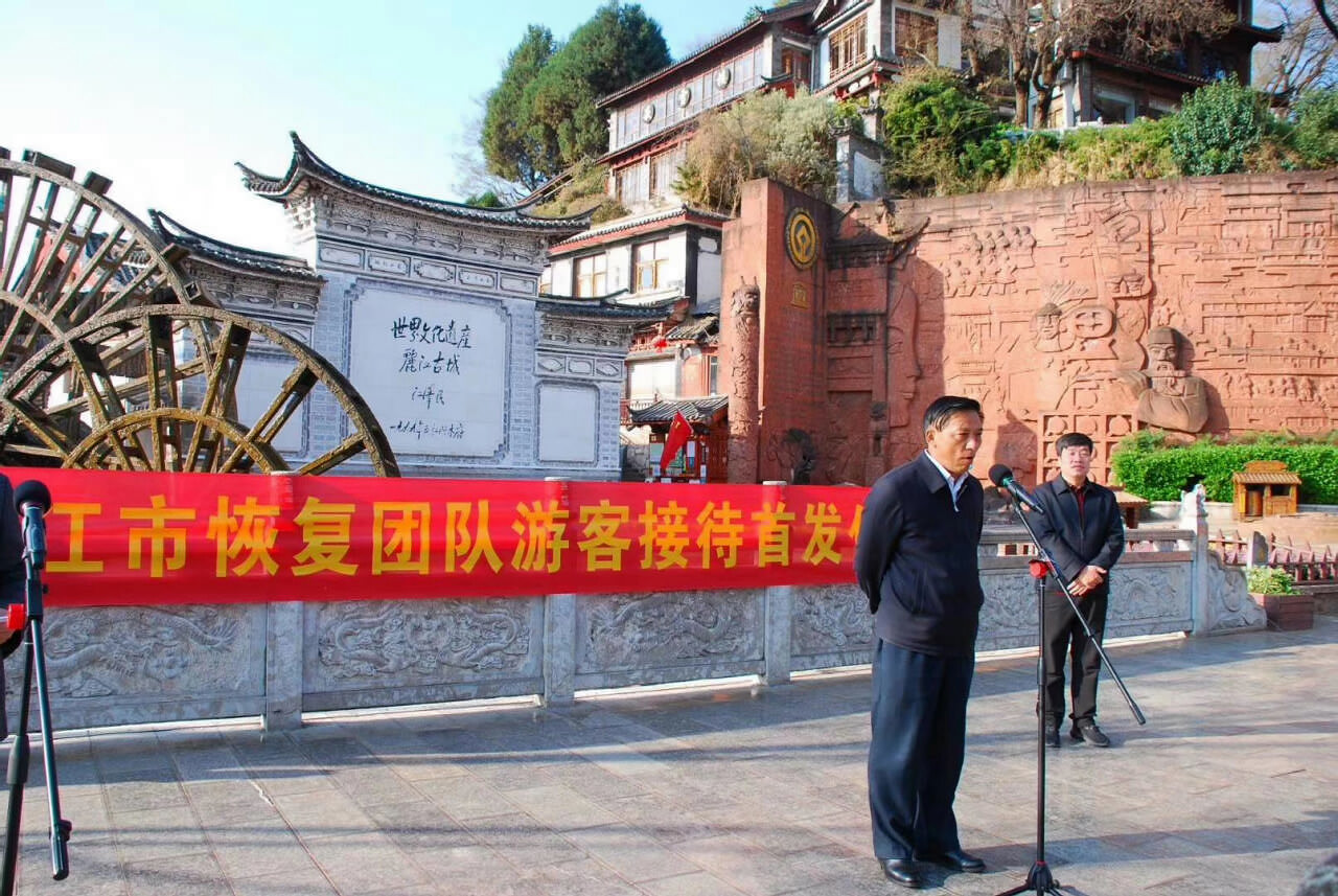 疫后麗江市恢復(fù)團(tuán)隊(duì)游客接待首發(fā)儀式在麗江古城大水車舉行-麗江旅游再出發(fā)