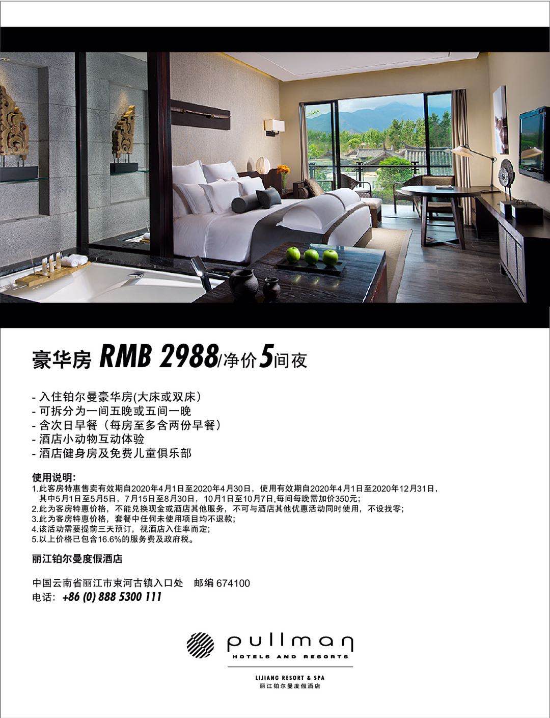 麗江鉑爾曼度假酒店九周年特惠